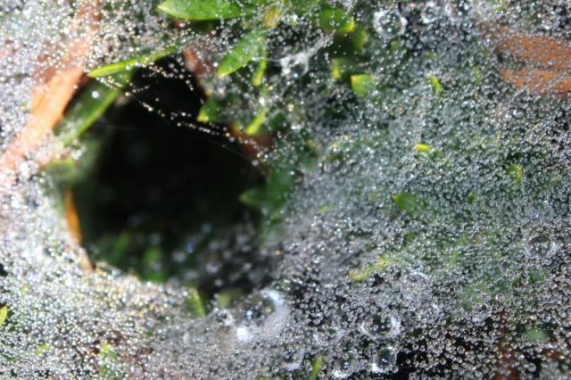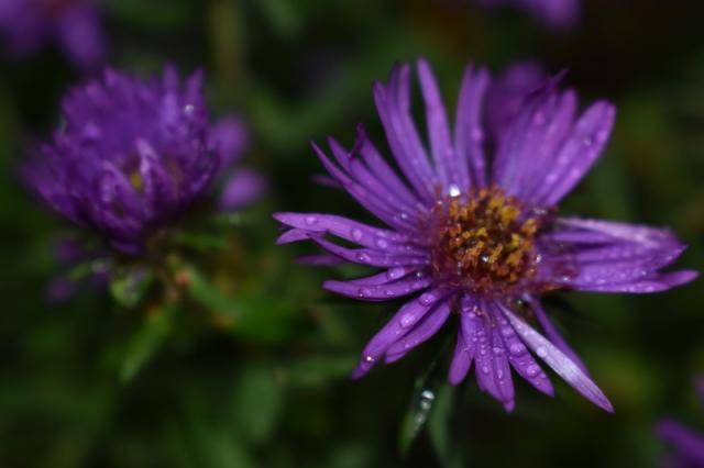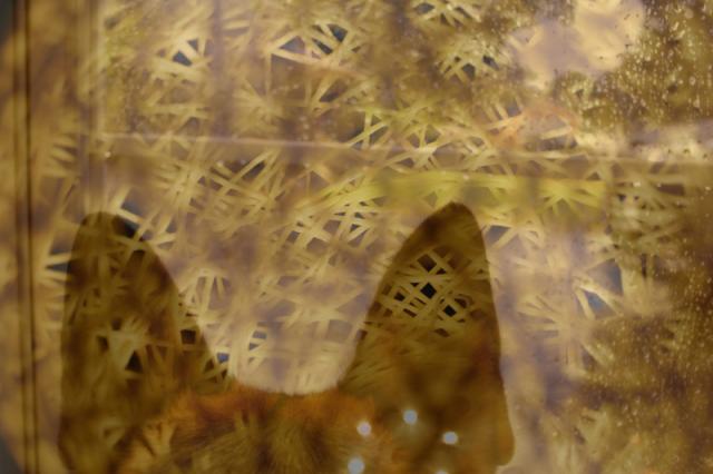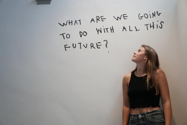 Smiling female student in dark-rimmed glasses talks to her fellow students as they chart the growth of invasive species in a field