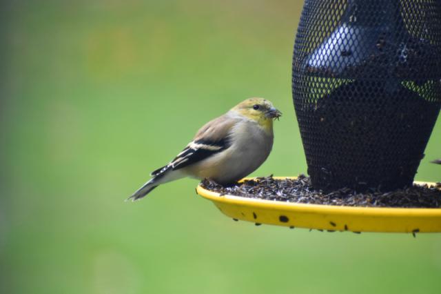 Nestor the Owl and student doing a yoga pose in front of the Globe on the campus green