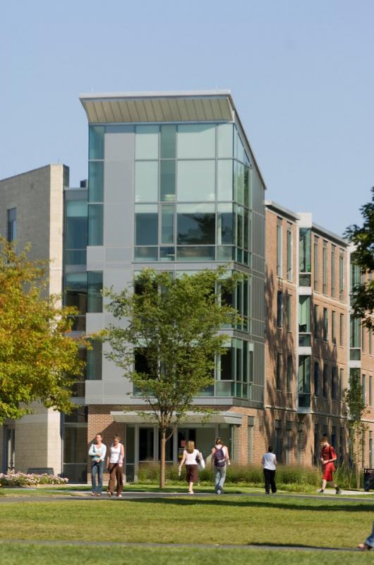 Opened in 2005, New Hall houses 403 sophomore, junior and senior students in single and double rooms found within 4- and 6-person apartments. The laundry room is located on the first floor just off the main lobby. It includes several high efficiency washers and dryers (only high efficiency detergent should be used in the washers). Vending machines are located in the laundry room as well as on each floor of the building.